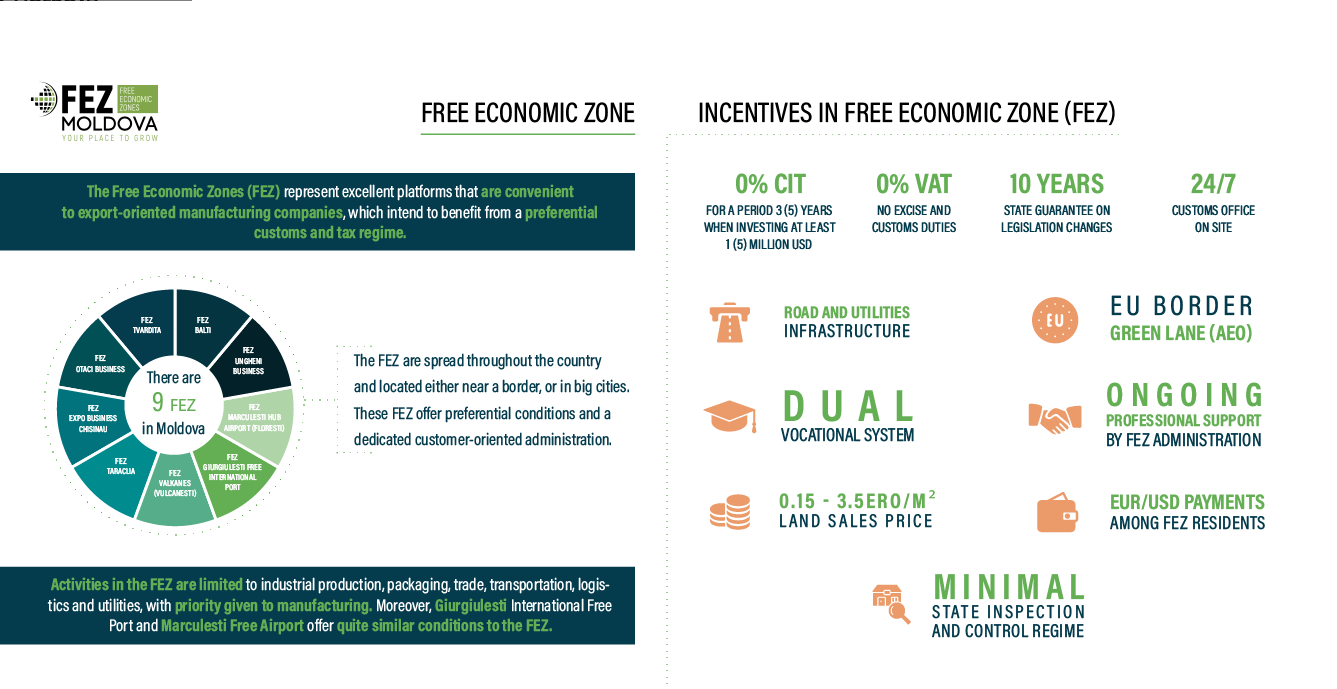 Resident of the free zone can be any individual or legal person registered according to law as a subject of entrepreneurial activity in the Republic of Moldova, any educational institution, scientific research center and technology transfer, other entities that contribute to increasing the quality of the workforce residents.